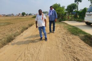 चित्र परिचय – बन रही सड़को का जायज़ा लेते हुए चेयरमैन जगत