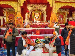गायक पंकज निगम द्वारा दूसरी तरफ एक पर एक बालाजी की शान में भजनों की प्रस्तुति होती रही।कार्यक्रम में भजनों की प्रस्तुति के बीच जयकारे लगते रहे।