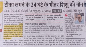 बताते चले कि बुधवार दोपहर 12 बजे, कुलदीप मिश्रा अपने दो माह के कलेजे के टुकड़े को पीएचसी लेकर पहुंचे थे। वहां ‘पेंटा फर्स्ट’ का टीका लगा और दो बूंद ड्रॉप पिलाई गई। किसे पता था कि यह दवा सुरक्षा नहीं, बल्कि काल बन जाएगी। टीका लगने के कुछ देर बाद ही मासूम को तेज बुखार चढ़ा। रात में बच्चे को पैरासिटामोल पिलाया गया लेकिन गुरुवार सुबह बच्चे की हालत बिगड़ी, उल्टियां शुरू हुईं और शरीर पर लाल चकत्ते पड़ गए। नाक से खून बहने लगा और देखते ही देखते मासूम ने दम तोड़ दिया।